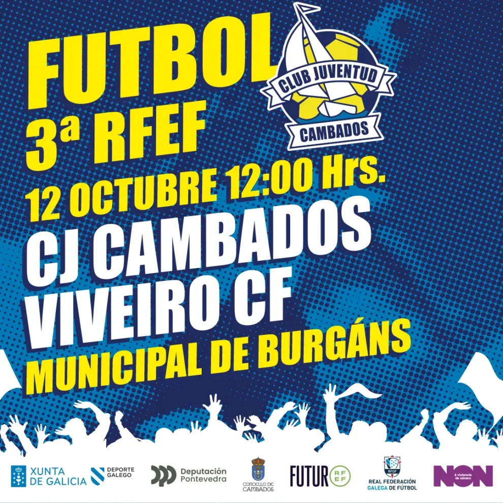 O domingo, 12 de outubro, a partir das 12:00 horas é día de partido en Burgáns! CJ CAMBADOS vs VIVEIRO CF Agardámosvos #mareaamarela!!!